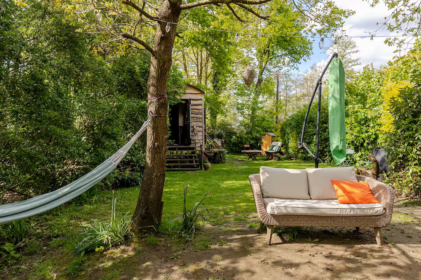 Tinkerbell is a beautifully crafted, insulated hut tucked under a leafy canopy on a peaceful private road. Designed for comfort and connection to nature, it's cool in summer, warm in winter, and bursting with thoughtful touches.